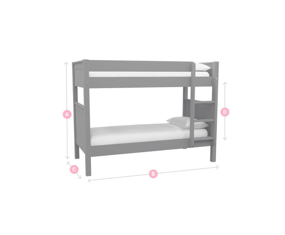Featuring a space-saving design, this bunk bed is perfect for maximising room space while maintaining style. Both beds feature wooden slats, and the main bed frames accommodate standard single mattresses. The solid beech hardwood components add durability and longevity to this classic piece.