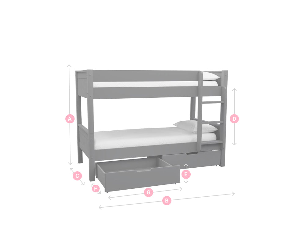 Incorporating built-in storage drawers, this bed provides an effective solution for storing clothes, toys, books, and other essentials, helping to keep the room tidy and organised. The slatted mattress bases on both beds offer excellent support, making them ideal for standard single mattresses. The inclusion of solid beech hardwood components enhances the durability and longevity of this classic, space-saving design.