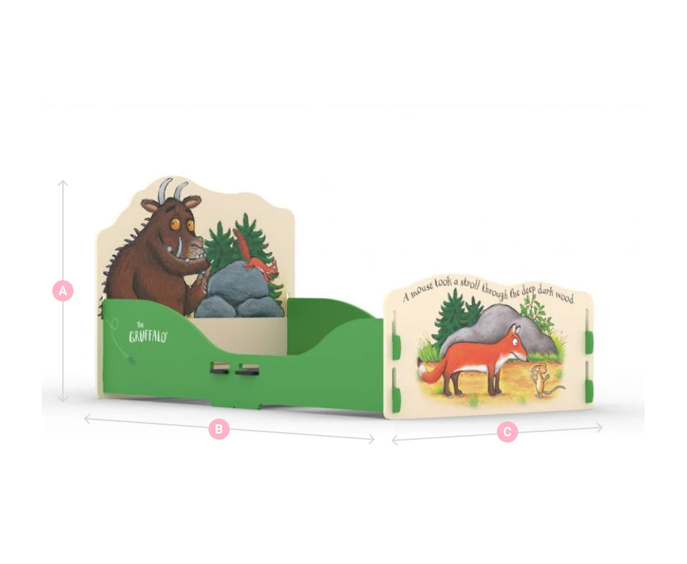 Turn your child’s bedroom into a magical forest with the Kidsaw Gruffalo Toddler Bed, based on Julia Donaldson’s classic story and illustrated by Axel Scheffler. Perfect for little ones moving from a cot to a ‘big’ bed, this official Gruffalo bed has a mattress size of 70cm x 140cm so there’s plenty of room to snuggle up.