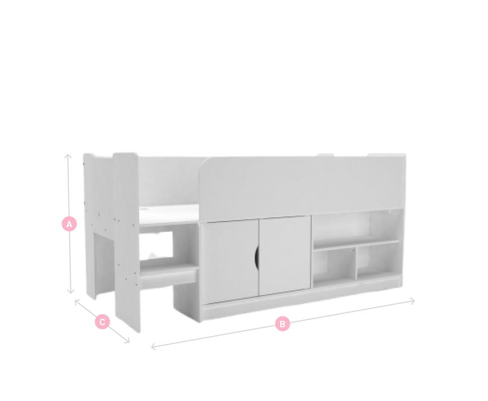 Available in a crisp white finish, the Kidsaw Kudl Midsleeper is perfect for any bedroom decor. Create a fun and organised space for your little one or a stylish and practical sleeping area for your teenager, this midsleeper cabin bed is perfect for kids and teens alike.