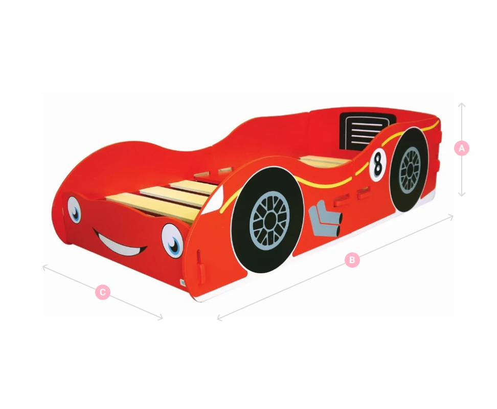 Perfect for junior use the bed fits into any room layout, whether it’s a dedicated bedroom or a shared space. The compact low profile design means it takes up minimal space so you can fit in other furniture or play areas without feeling cramped. This thoughtful design means the Racing Car Junior Bed will fit into any room size and configuration.