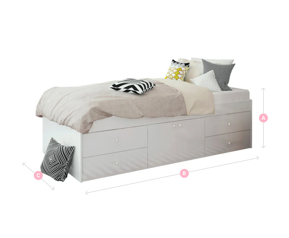 The Kidsaw White Arctic Single Bed requires a mattress size of 90 x 190 cm and is perfect for creating a comfortable sleeping space for your child. This single bed is easy to assemble and no professional help is required, making it a great option for busy parents.