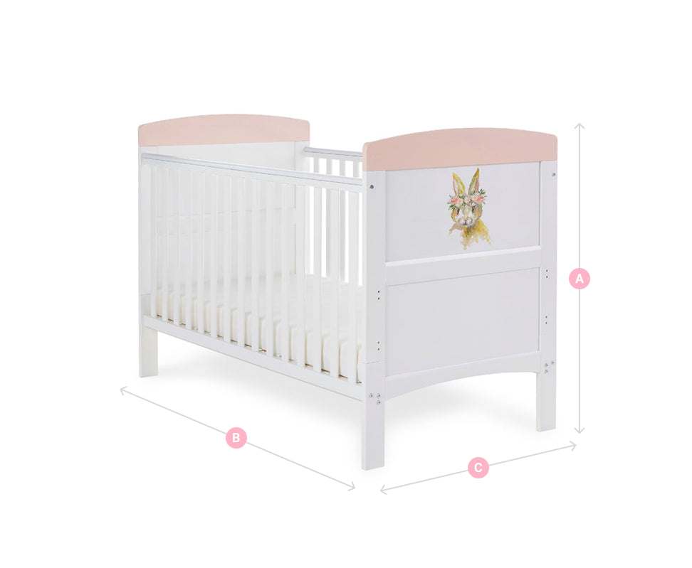But the Obaby Grace Inspire Water Colour Rabbit Cot Bed is more than a picturesque haven. Its design is steeped in practicality, transforming seamlessly from a snug cot to a delightful toddler bed as your child grows. This versatility makes it a long-term companion in your child's journey from babyhood to toddler years, adapting to their changing needs with grace.