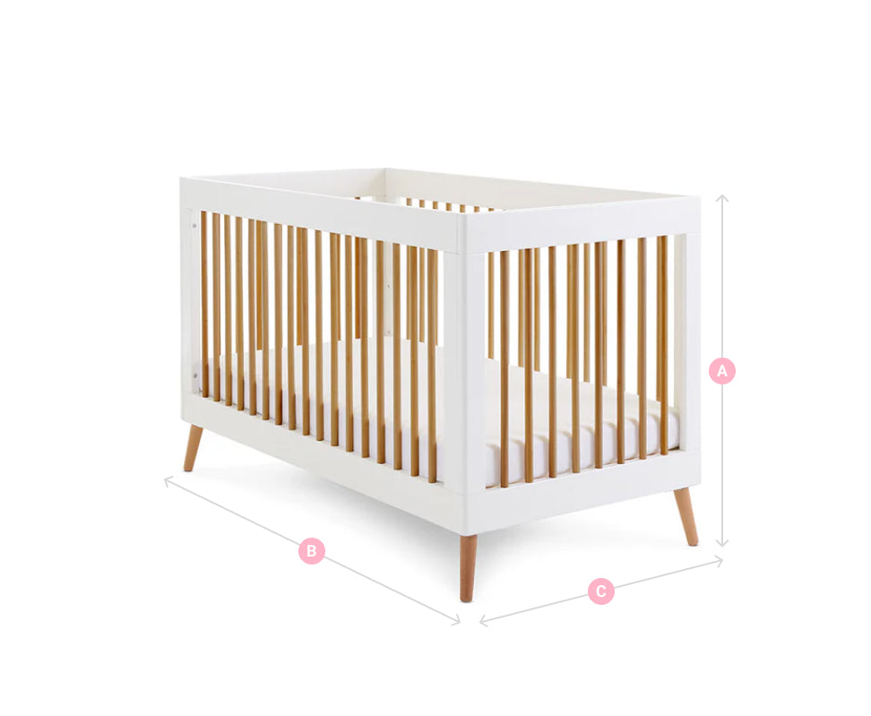 Let's start with the cot bed. It's the perfect size for little ones to have sweet dreams and playful days. The best part is that this cot bed grows with your child. It begins as a safe and snug cot for your tiny baby. As your child gets bigger, it can change into a nice little bed for toddlers. This is fantastic because it means you don't have to buy a new bed as your child grows. It's like having two beds in one, which is super handy!