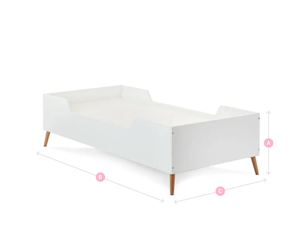 Adapting seamlessly to the evolving needs of growing children, the Obaby Maya Toddler Bed serves as a cosy sanctuary where dreams are nurtured, and independence is gently fostered. It's the perfect size for toddlers, offering them the confidence to climb in and out on their own, while still enveloping them in the familiar comfort and safety they've grown to love.