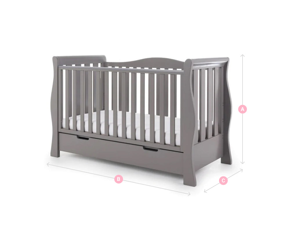 Welcome to the wonderful world of the Obaby Stamford Luxe Sleigh 4 Piece Room Set in Warm Grey, a complete and enchanting collection that's just perfect for creating a magical nursery for your little treasure. This lovely set, crafted with care and thought, includes four essential pieces for your baby's room: a gorgeous sleigh cot bed, a practical changing unit, a spacious wardrobe, and a handy tall chest of drawers, all finished in a warm grey that adds a cosy and stylish touch to any nursery.