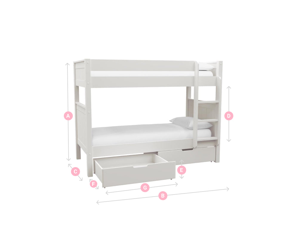The space beneath the bottom bunk can be utilised for additional storage, and the clean white finish complements a variety of bedroom styles and colour schemes, making it easy to integrate into any decor.