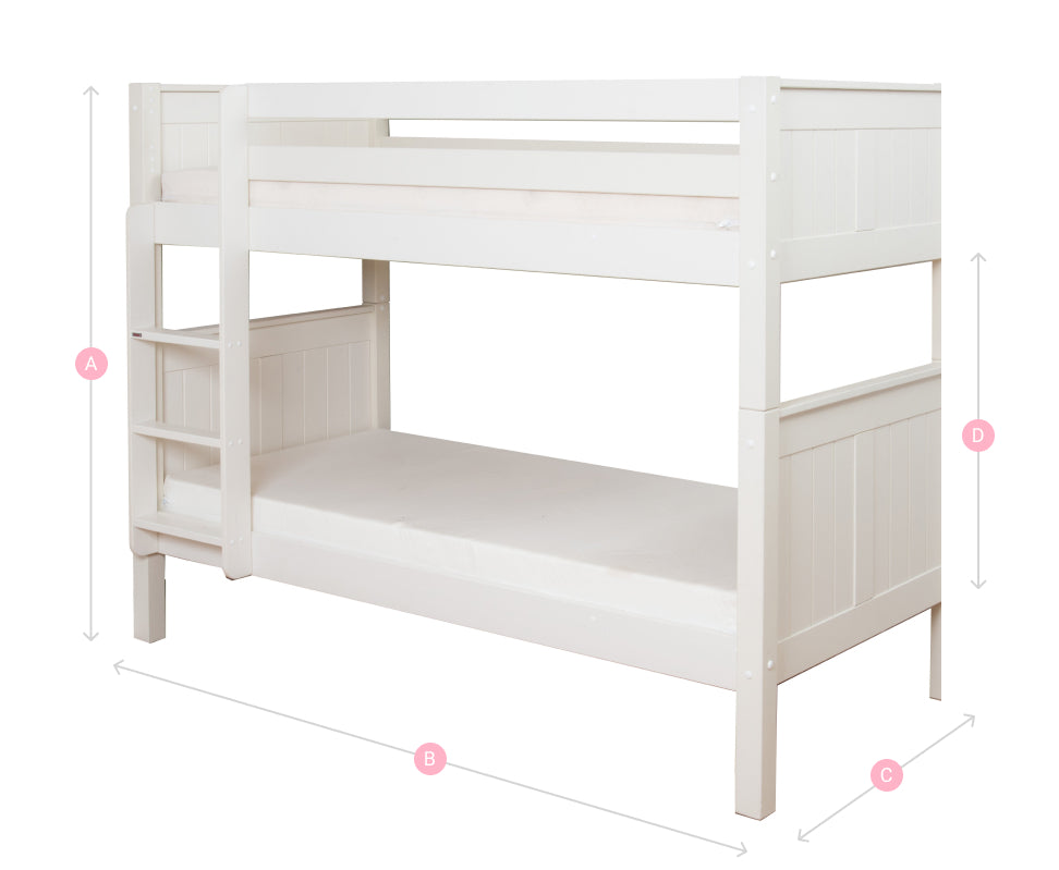 The Classic Originals Wooden Bunk Bed boasts a stylish and versatile bunk bed's design, making it a timeless and functional choice for classic kids’ rooms. This bunk bed, finished in a popular white shade with classic detailing on the headboard and footboard, seamlessly complements any interior style. It offers two comfortable sleeping areas without compromising floor space, making it ideal for shared bedrooms. Crafted from durable materials, the bed frame is made of solid pine, ensuring structural integrity and a sound sleeping environment for your children. The bunk bed accommodates single mattresses, ensuring secure sleeping conditions and maintaining the integrity of the overall design.