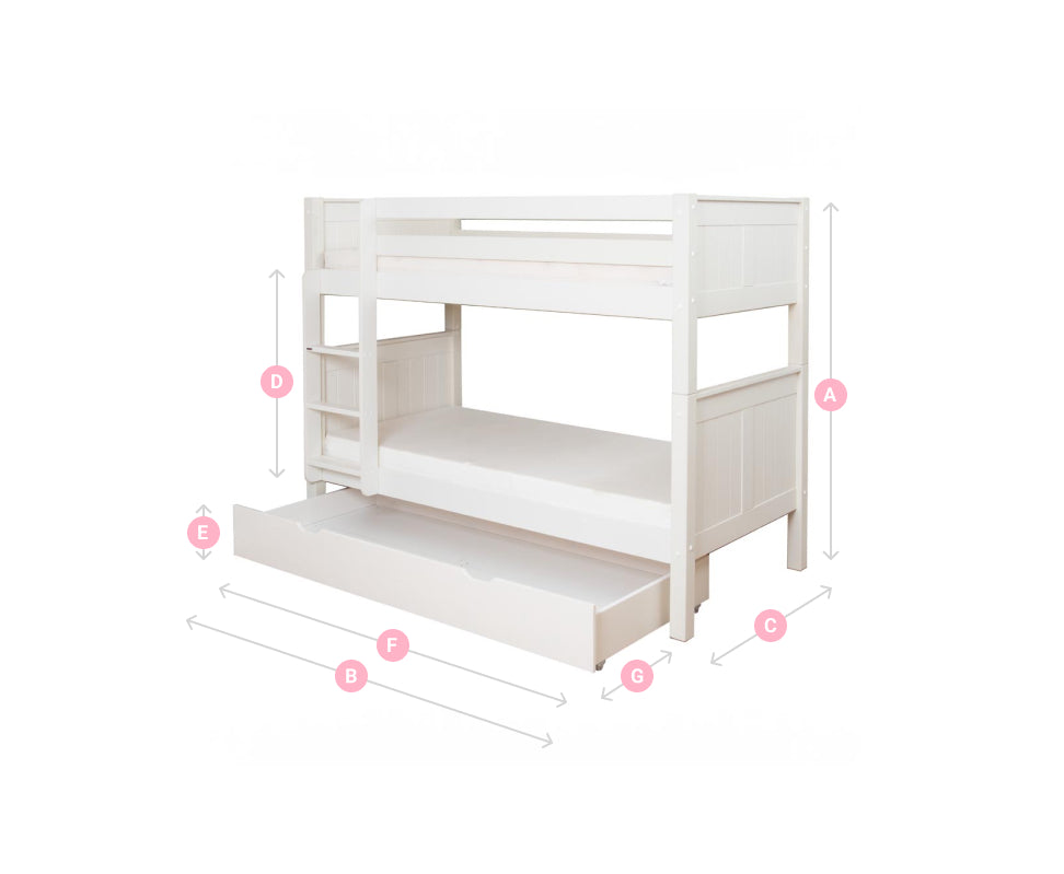 The White Wooden Classic Originals Bunk Bed With Trundle is a stylish and timeless addition to any bedroom, designed to complement a variety of interior styles. This classic bunk bed, finished in a Pure White lacquer, offers both aesthetic appeal and practical functionality. The bunk bed frame is designed to accommodate two single mattresses, making it ideal for optimising sleep and space in shared living environments.