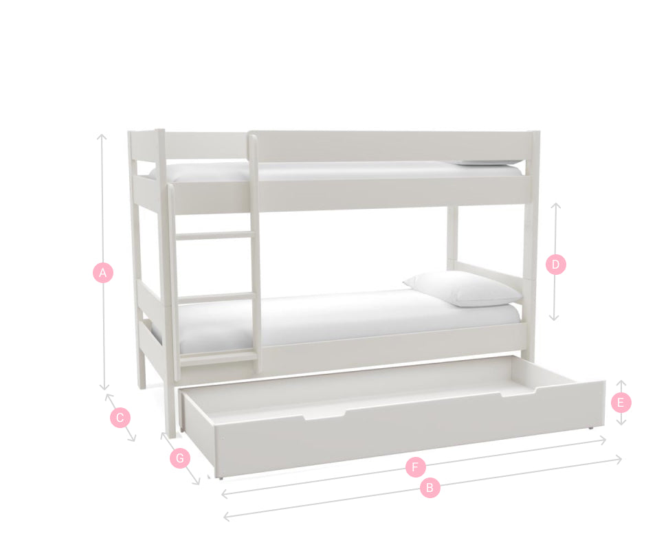 Trundle Height 24.3 cm, Trundle Width 188.5 cm and Trundle Depth: 78.8 cm.